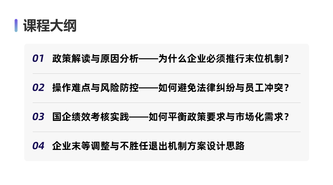 在市场竞争白热化与国企深化改革的浪潮下,企业的人力资源管理面临着前所未有的挑战。一方面,国企改革三年行动方案明确要求推动管理人员能上能下、员工能进能出、收入能增能减,构建更加市场化的用人机制;另一方面,《劳动合同法》等法律法规对企业的人员管理提出了严格规范,企业在优化人员结构时需确保合法合规。当前,众多企业试图通过末位调整与不胜任退出机制来提升组织效能、优化人才结构,但在实际操作中却困难重重。因此,如何在遵循政策法规的前提下,科学合理地设计和实施这一机制,成为企业管理者亟待解决的关键问题。