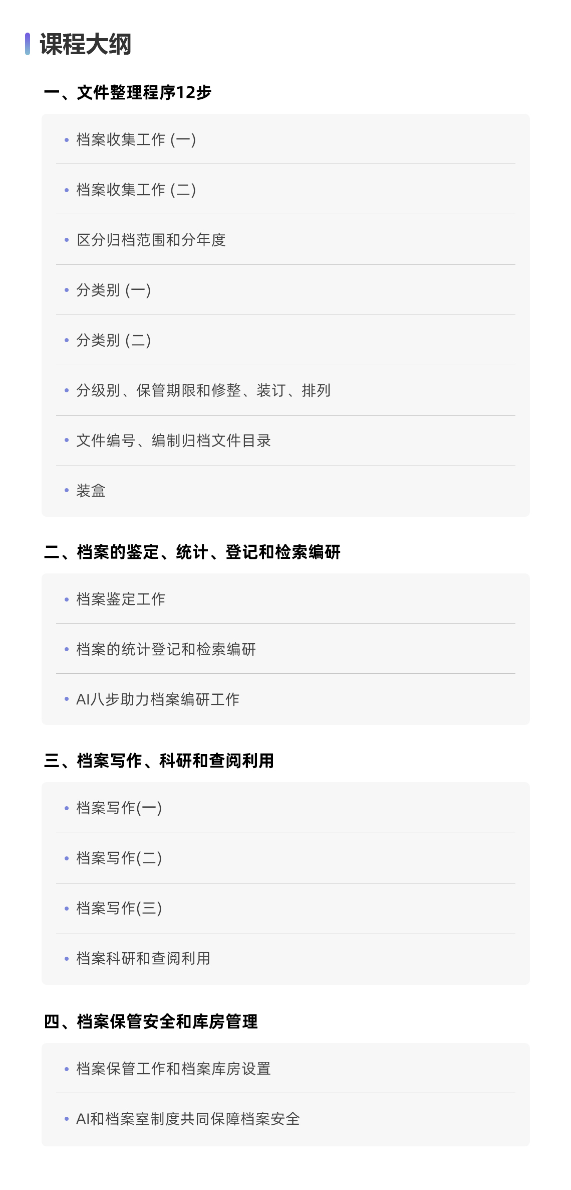 . 学会归档文件整理12步,并能在具体档案工作实践中熟练利用AI