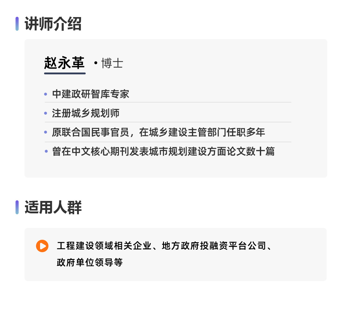 必修人群:工程建设领域相关企业、地方政府投融资平台公司、政府单位领导等