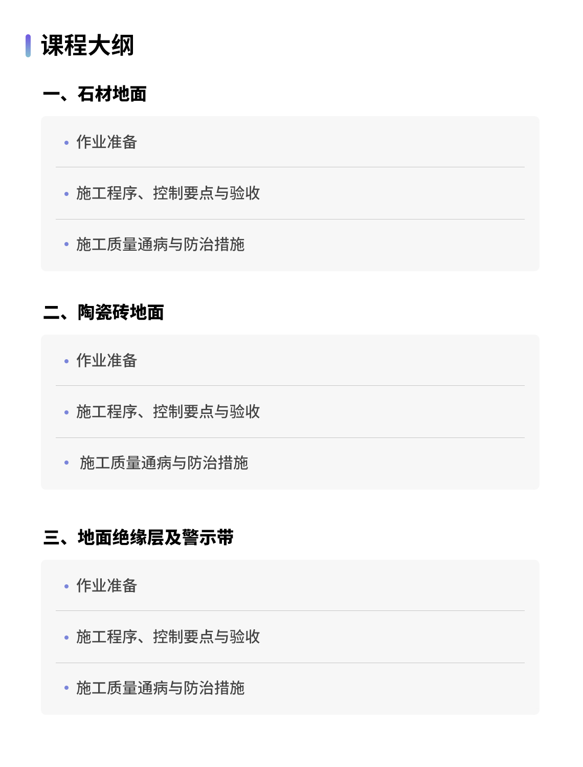 . 掌握预制水磨石、石材、陶瓷砖等饰面材料的施工工艺与验收标准