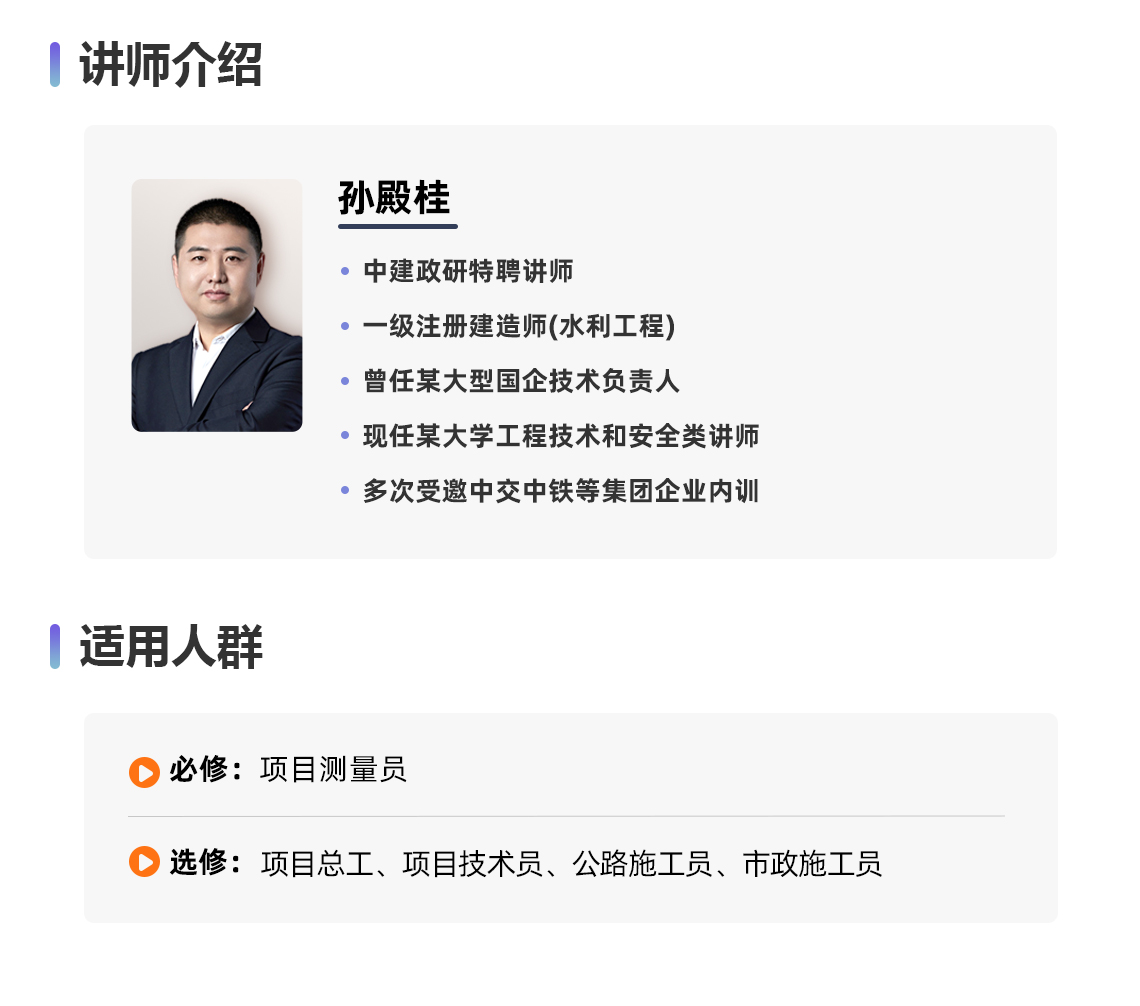 选修人群:项目总工、项目技术员、公路施工员、市政施工员
