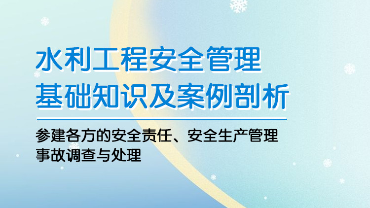 本课程结合案例为施工企业安全生产提供指导。介绍了水利工程参建各方安全生产责任,依据法律和规范进行安全生产管理,同时进行施工危险源辨识与风险评价,从而有效规避安全生产风险。