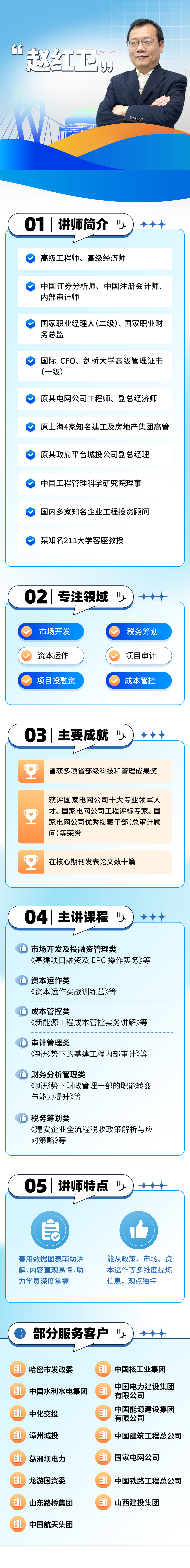 曾任某知名电网公司工程师、副总经济师,先后在4家知名建工及房地产集团任职高管,在某地方政府投融资平台公司任副总经理。